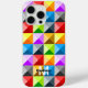 Patchwork Colourful geometric pattern Monogram iPhone 15 Case. Personalise unique fun gift with your initial and name.