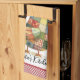 A cute chicken themed kitchen towel with a colourful patchwork hen accented with a red gingham style checked border. Personalise it with your name or other text caption. See other kitchen decor items in this same design collection.