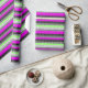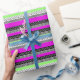 Patchwork of black and white and neon stripes wrapping paper