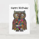 Birthday Card with a cute patchwork collage owl illustration made from individual photographs of flowers, animals, landscapes, sunsets and still life.