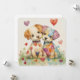 Watercolor of Patchwork pups with hearts for Valentines Day. Cute saying, sweet card.