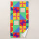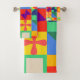 This towel set has a Bauhaus design of squares with odd shapes inside, repeated across the design.