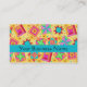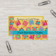 Make an impression with this business card for your quilt business, shop or guild. Coordinate with a matching business card holder. This business card features a quilt block design based on original art by Phyllis Dobbs. The design features favourite patchwork quilt blocks such as a log cabin, pinwheel, star plus unique blocks created in vibrant and dynamic colours on a sunny yellow background. The colours are fuchsia pink, orange, turquoise, yellow, red and green. Fully customisable for all your business and contact information.