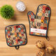 Patchwork Quilt Effect Oven Mitt & Pot Holder Set