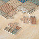 A quilt top in pastel shades in geometric, stripes and floral patterns