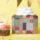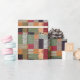 patchwork quilt design in green and brown and rust coloured calico pattern