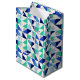 A modern patchwork twist on a non-religious holiday print featuring classic snowflakes peeking out from behind geometric shapes.