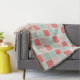 Patchwork Style Red and Blue Squares Pattern Throw Blanket