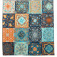 Patchwork Style. Seamless Pattern of 16 decorative square ornaments in blue-orange colours.