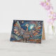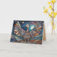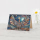 A whimsical patchwork turkey with wings open wide to celebrate Thanksgiving -- design created with use of artificial intelligence software. Inside greeting: Happy Thanksgiving.