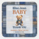 Patchwork Western Denim Bear Blue Jean Baby Shower Square Sticker