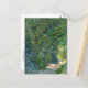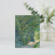 A fine art postcard with the post-impressionist painting, Path in the Woods (1887), by the Dutch artist Vincent van Gogh (1853-1890). A lush landscape of a dirt path through the trees with dapples of sunlight in Paris, France.