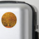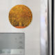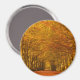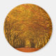 Round photo magnet with a walking path through the golden beech trees in a forest in autumn colours in fall season in the Netherlands.