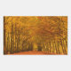 Rectangular photo sticker of a walking path through the golden beech trees in a forest in autumn colours in fall season in the Netherlands.