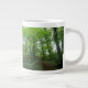 This awesome mug features a photograph taken in a forest in England. The beautiful trees glow with an intense green as they reach up towards the sky. A small path winds its way deep into the woods surrounded by tall trees.
