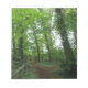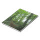 This awesome notepad features a photograph taken in a forest in England. The beautiful trees glow with an intense green as they reach up towards the sky. A small path winds its way deep into the woods surrounded by tall trees.