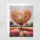 A highly symbolic and textured painting featuring a central tree with bare branches, its leaves replaced by a multitude of small red, white, and pink hearts. The tree is positioned against a massive, shimmering golden heart that fills the sky, creating a powerful and whimsical backdrop. The foreground is a landscape of abstract, horizontal bands in various shades of pink and red, resembling a cultivated field. A path of golden tiles leads from the bottom of the canvas to the base of the tree. The overall style is rich with texture and symbolism, evoking themes of love, affection, and the journey to the heart.