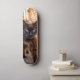 The skateboard has a specific visual design. In this case, the design consists of a graphic representation of a black cat walking cautiously. The image is a stealthy cat, with details that highlight its feline features, such as pointed ears, alert eyes and an elegant posture. The description implies that skateboarding not only serves as a means of transport, but also has a unique aesthetic element that makes it stand out, giving the person who uses it an interesting and pleasant visual experience.
