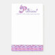 Patricia personalised P name meaning or message post it notes. Initial P monogram name and meaning in purple, pink and white. Ideal for a personalised gift for a girl who has a name that starts with the letter P. This example reads Patricia Noble-born. Well connected, principled and formidable or you can customise the text with your own name or message if required. Makes a unique office celebration gift. © Decorative letter P flowers with hearts hand drawn and pattern uniquely created by Sarah Trett for www.mylittleeden.com