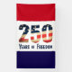 A vertical red‑white‑and‑blue layout centers a bold tribute to America’s 250 years. The number 250 is styled in a stars‑and‑stripes pattern, creating a striking focal point against the clean white band. The phrase Years of Freedom completes the design, giving it a celebratory, commemorative feel that blends simplicity, pride, and national heritage.
