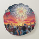 Patriotic 4th of July Fireworks Celebration Crowd Round Cushion