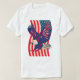Show your American pride with this bold patriotic eagle design. Featuring a powerful bald eagle soaring in front of a flowing American flag with a classic USA banner, this shirt represents freedom, strength, and the American spirit.