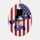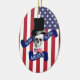 Funny patriotic American flag design with a fun vintage gothic skull wearing Abraham Lincoln style top hat and a red white and blue stars and stripes american star spangled banner flag , with God bless America text saying.