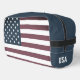 Patriotic American flag custom travel toiletry bag. Stars and stripes design. Vintage US flag of United States of America. Personalise with name or monogram optionally. Colours can be changed too.