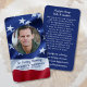 USA American Flag Memorial Funeral Prayer Card. This military memorial prayer card features a United States of America Flag in a modern red white blue design. Front "In Loving Memory" Personalise this military funeral prayer card with your loved ones photo, name & dates, and sentiment. Back ~ 'May You Always Walk In Sunshine' Poem, please reach out if you would like a design with a specific poem other than. This American Flag prayer card is a treasured keepsake, military funeral services, and veteran memorial service or celebration of life. In Loving Memory Military Memorial American Flag Prayer Cards. COPYRIGHT © 2020 Judy Burrows, Black Dog Art - All Rights Reserved. Patriotic American Flag Funeral Prayer Card Photo
