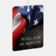 A true keepsake proud to be a American features a folded flag and saying "God Bless America" in modern font ornament.