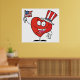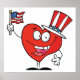 A patriotic American heart with a happy face wearing a hat and waving a flag. This design looks really effective on these Poster