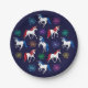 Patriotic American Red White Blue Unicorns Paper Plate