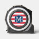 A custom patriotic tape measure featuring a monogram initial in a navy blue frame over bold red and white stripes with star accents. A fun, practical gift for handy dads, contractors, DIY lovers, or anyone who takes pride in both their work and their country. The initial is fully customisable. Perfect for Father's Day, birthdays, or stocking stuffers.