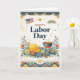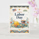 This warm and inviting Labor Day design celebrates the heart of everyday work with a friendly, vintage-inspired aesthetic. Set on a softly textured cream background, the message “Happy Labor Day” is surrounded by cheerful patriotic details, including an American flag, stars, and sunburst accents. At the center, a golden hard hat and a steaming backyard grill rest among abundant florals, symbolizing both dedication to work and the simple joys of well-earned leisure.