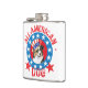 Well made flask, a little better than I had expected. Flask came in clear plastic box which gave it a nice presentation when I took it out of the zazzle packaging. Image is not printed on flask but on sticker. Don't know how this will hold up I haven't used it yet. This would make a Great gift! I plan to purchase more for friends! Cheers. I thought a little brighter than computer. Very crisp, writing wasn't