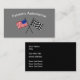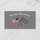 Automotive business cards with a patriotic racing theme cross flags graphic and your business name featured on the front and contact details on the back. Created for an auto repair shop, racing team mechanic, or muscle car restoration.