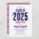 Invite your guests to a backyard BBQ graduation party with these charming invitations. Featuring a patriotic red and blue star design, the title "Class of 2025" boldly stands out, making it clear that this celebration is in honour of the graduating class. And with a customisable text template, you can easily add your own personal touch, making each invitation unique and special.