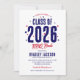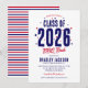 Invite your guests to a backyard BBQ graduation party with these charming invitations. Featuring a patriotic red and blue star design, the title "Class of 2026" boldly stands out, making it clear that this celebration is in honour of the graduating class. And with a customisable text template, you can easily add your own personal touch, making each invitation unique and special.