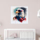 Patriotic watercolor bald eagle with blue glasses and bandanna in the colours of the American flag