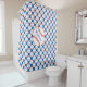 This shower curtain features red and white baseballs surrounded by a blue background. Easily customise the text for a special sports fan or remove entirely. You can change the blue background by customising to suit your decor.