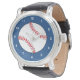 This patriotic sports watch features a red and white baseball on a blue background. Customise the blue background to the colour of your choice.