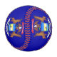 Crafted with precision and attention to detail, this baseball ball showcases the vibrant colours and symbolism of the Michigan state flag. The design prominently displays a dark blue field with the state coat of arms centred. The coat of arms features a shield with a blue background depicting a man standing on a peninsula, a rising sun, and a moose and elk on either side. Above the shield, an eagle holds a banner with the state motto: "E Pluribus Unum," and below, another banner with "Tuebor" and "Si Quaeris Peninsulam Amoenam Circumspice."