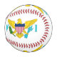 Crafted with precision and attention to detail, this baseball ball showcases the vibrant colours and symbolism of the Virgin Islands flag. The design prominently displays a simplified version of the United States flag, with white and blue stripes and a blue field featuring a white-fimbriated red-edged white diamond.
