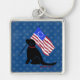 Patriotic Black Lab American Flag Key Chain Silver