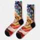 Vibrant abstract socks featuring a dynamic fusion of American and Chinese flag elements, painted in swirling red, blue, yellow, and white brushstrokes. A bold, artistic statement piece for cultural enthusiasts and lovers of expressive design.