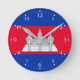 The clock did not take as long to arrive as I thought it might and was extremely well packaged. I didn't do the measurements so I didn't realize it is a little smaller than the average clock but that does not matter (just make sure you check if that's important to you).It is really nifty! It seems very solid and well made not flimsy at all. It has been going well and has kept good time in its few weeks on my wall. Nice product. Gets noticed too! Nicer in real life than the picture but true to the picture