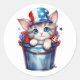 Patriotic Cat Red White Blue Top Hat Classic Round Sticker
