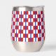 Sip in style with this eye-catching Patriotic Chequered Stripe Stemless Wine Tumbler! Featuring a bold red-and-white chequerboard design accented with striking blue vertical stripes, this tumbler blends modern design with classic Americana vibes. Perfect for picnics, BBQs, or relaxing at home. Double-walled to keep your beverage chilled longer. A standout gift for any wine lover!