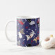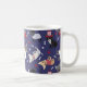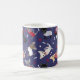 Patriotic chihuahuas dressed in red white and blue with stars, stripes and dog bones on a blue background.