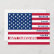 Stylish, patriotic holiday postcard for Thanksgiving, showing the American flag of the USA with a customisable Christian Bible verse taken from Psalm 103:2 - "Bless the Lord, O my soul, and forget none of all His benefits." The wording appears on the white stripes of the Stars and Stripes flag on the right hand side. 'Happy Thanksgiving' appears as white typography on one of the red stripes on the bottom left hand corner. On the reverse, there is a simple greeting, which is customisable, so you can add your own personalised message and add your name. Create your own unique greeting on a selection of Happy Thanksgiving cards by Berean Designs that you can send to family, friends and clients for the US Thanksgiving celebrations. Part of the USA Collection.